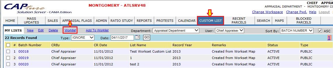 1. To check the parcels that are added in worklist, click on the CUSTOM LIST tab and click on Worklist hyperlink.