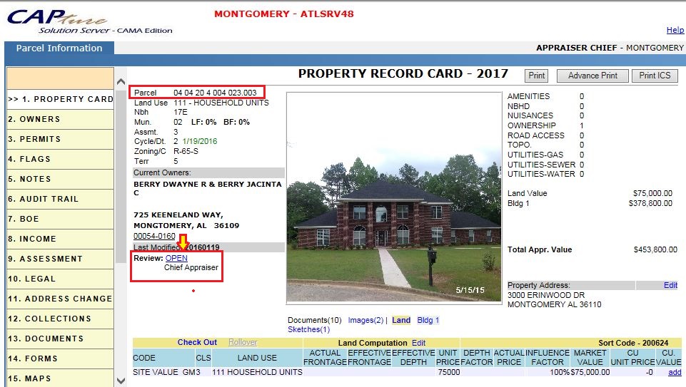 3. On the parcel PRC, click on the Review: Open hyperlink or it can be directly done under field visit parcels by opening Maintenance Hyper link.