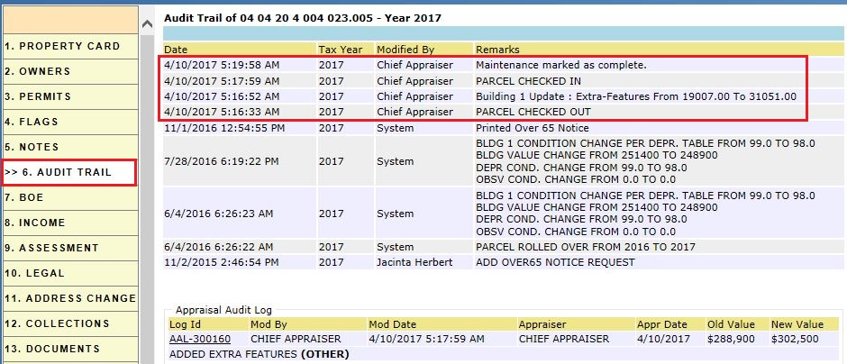 Audit trail for Adding Improvements (Extra Features, Misc.) - Maintenance with change.