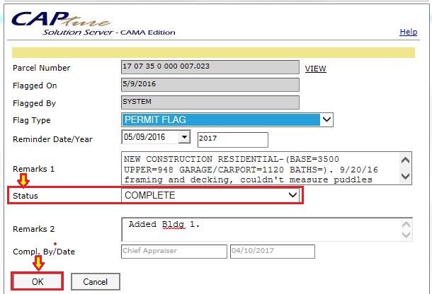 8. Once the permit flag is marked as complete, verify the status is changed from pending to complete.